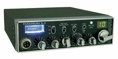 Magnum S3 CB Radio MAGNUM S3 10 Meter CB Radio has AM/FM/PA Modes Power output for S3 (AM)10 watts carrier/40 watts PEP Power Output. (FM) 40 watts Final amplifier 2 x 2SC1969 S3 has Variable power control in all modes, Turbo Echo with dual controls on the S3, All mode talkback with S3 volume control on front panel S3 TOP GUN modulator with on/off control, S3 TOP GUN compressor 4 pin front panel microphone jack (standard wiring) S-3 6 position band switch SWR bridge & warning light Frequency counter jack S/RF meter +10kHz switch Microphone gain/RF gain Noise blanker/ANL. S-3 comes with FREE schematic and parts layout diagrams |
